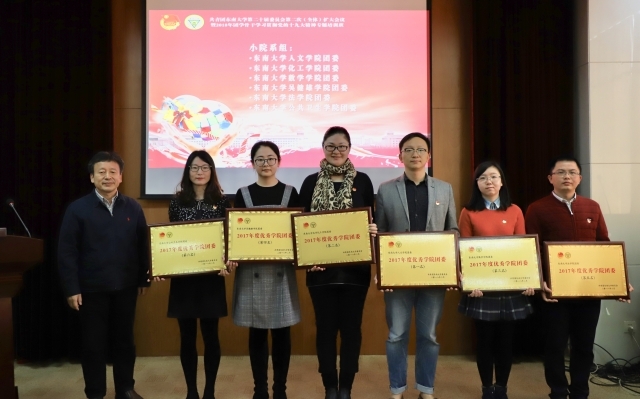共青团东南大学第二十届委员会第二次全体(扩大)会议暨2018年团学骨干学习贯彻党的十九大精神专题培训班于3月10日在东南大学九龙湖宾馆至友厅成功举办。在学院领导和老师的关心下,在同学们的共同努力下,数学学院团委荣获“2017年度东南大学共青团工作优秀院系团委”荣誉称号,小院系组排名第三。同时院系新生文化季“我一定要跑起来”访谈节目被评为优秀访谈类节目。期望数学学院团委在新的一年里,继续深化团的建设,做青年身边的共青团,再接再励,再创辉煌。