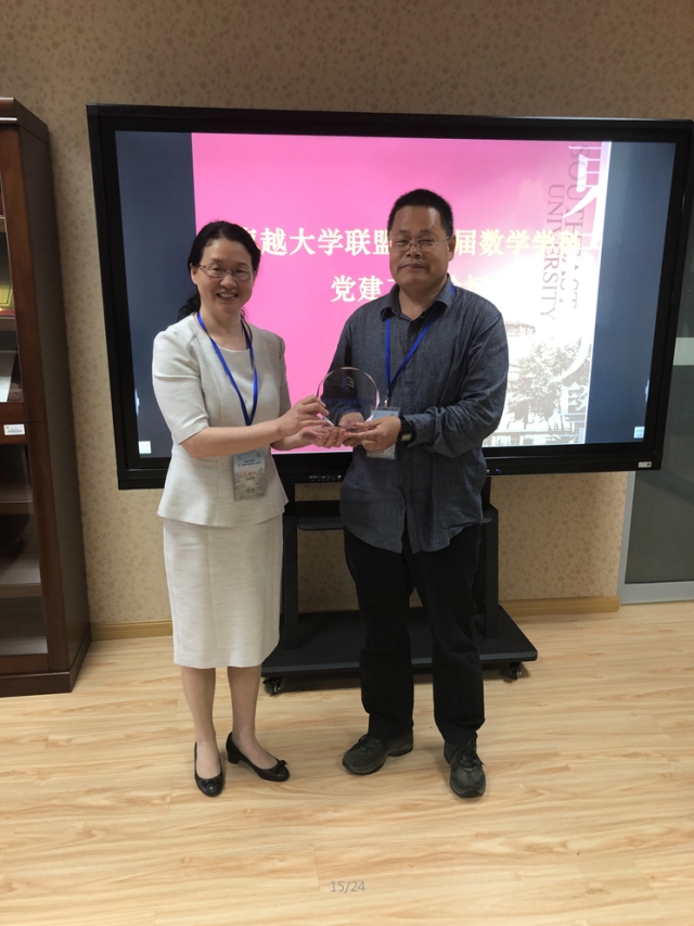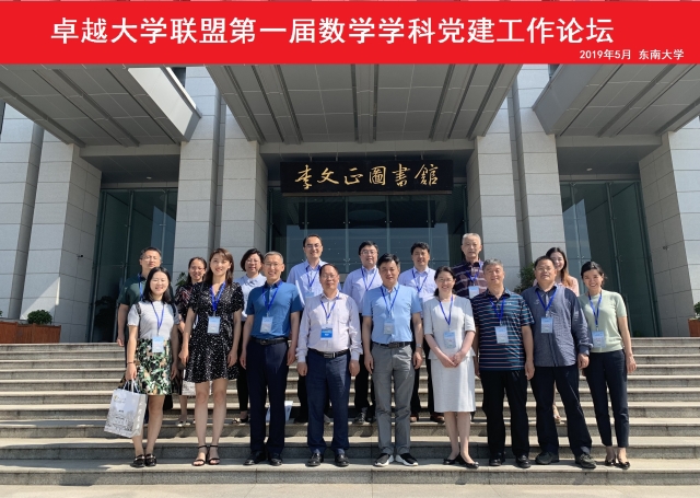 5月24日,卓越大学联盟第一届数学学科党建工作论坛在九龙湖校区成功召开,本次论坛由东南大学数学学院主办,来自包括北京理工大学、同济大学、哈尔滨工业大学、天津大学、大连理工大学、重庆大学、华南理工大学、西北工业大学在内的卓越大学联盟数学学科的10余位代表和数学学院教工党支部书记参加了此次论坛。东南大学组织部副部长、成贤学院党委书记邢纪红同志、数学学院院长曹进德教授出席并致辞,会议由数学学院党委书记吴映红主持。