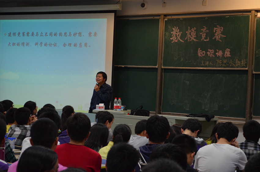| 东南大学本科生数学建模竞赛是我校基于数学专业特色的学术科技类品牌活动,也是全国大学生数模竞赛的校内选拔赛,至今已经成功举办六届,在全校范围内形成了较大的反响。 为了调动广大学生自主研学的学习兴趣,培养大学生的创新精神和实践能力,促进优秀创新人才脱颖而出,2013年4月17日,由数学系团委主办,数学系科协承办的东南大学数学建模知识讲座在九龙湖校区教六-201圆满举行。 4月17日晚18点30分,我们邀请了东南大学数学建模竞赛总教练、江苏工业与应用数学学会建模专业委员会主任委员、全国大学生数学建模竞赛江苏赛区秘书长、数学系副教授、博士陈恩水老师,为全校热爱数模的同学们作了一场精彩的数学建模知识讲座。全场座无虚席,更有近百名同学自己搬了椅子坐在教室过道中聆听陈老师的讲座。陈教授深入浅出地解释了数学建模的性质和含义,形象而生动地说明了参加数学建模竞赛的同学应该具备的主要能力和素质。同时,他强调,数学建模是一门严谨的学科,不仅需要缜密的思维,扎实的语言功底,还需掌握较强的计算机应用方面的能力。陈教授的精彩演讲博得同学们的多次热烈掌声。 讲座结束后,陈教授还与同学和老师进行了互动交流,面对同学们的提问,陈教授做出了详细的解答,使同学们受益匪浅。 本次讲座以即将到来的“东南大学本科生第七届数学建模竞赛”为契机,是校团委主办的东南大学科技节系列活动之一。本次讲座成功地鼓励了大学生踊跃参加课外科技活动,开拓知识面,丰富了校园学术氛围。相信,未来一定能更好地培养学生的科技创新、实践能力,在东大这片沃土上培养出更多热爱数模、热爱科技的学子。(袁煜昶) |