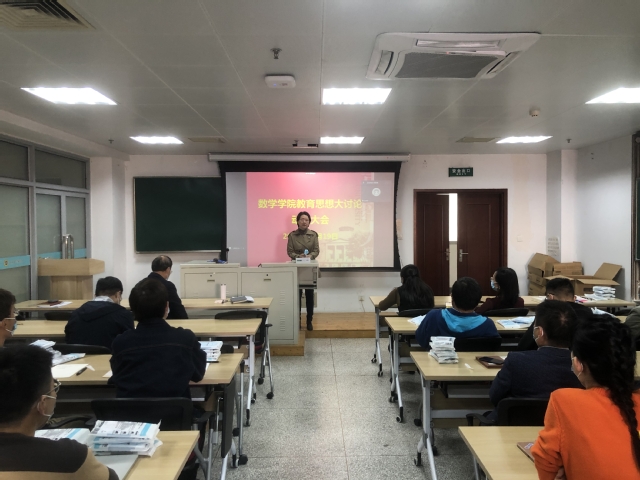 吴映红书记指出,此次教育思想大讨论,学校和学院高度重视,第一时间成立了数学学院教育思想大讨论工作组,学院不仅要探讨数学领军人才的育人之道,更要探讨如何完善“面上教学”培养体系以适应东南大学其他学科领军人才培养对数学能力的要求。吴映红书记强调,为党育人要求我们办好思政课,为国育才要求我们全体教师要认真提高教学水平,做好知识传授教育。吴书记指出人才培养关乎学生生长、学生未来,学院全体教师要通过此次教育思想大讨论增强责任感、荣誉感和使命感,回归立德树人的初心,为党的事业和每个学生负责任的态度认真上好每一门课程,真正让“课比天大,生为首位”变成一种工作习惯。最后,吴书记就此次大讨论的安排、内容和形式等方面提出了具体的要求。